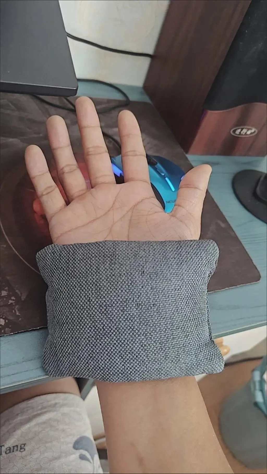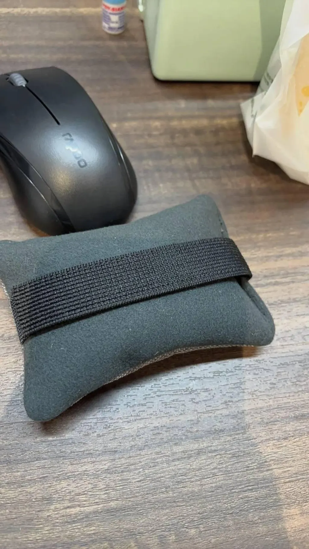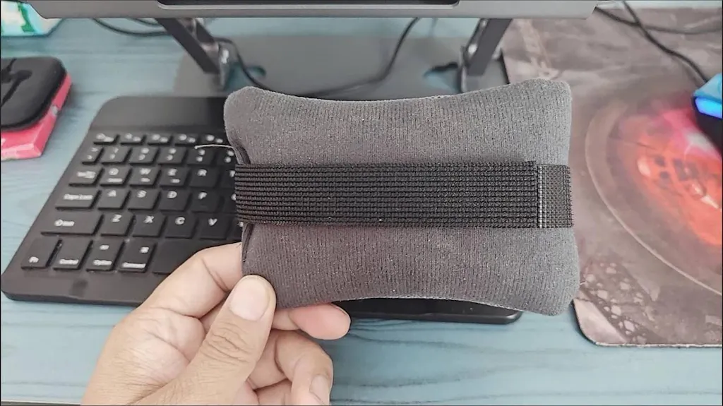 A soft ergonomic wrist support pad designed to improve comfort and reduce pressure during computer use. The lightweight cushion supports a natural wrist position while the adjustable strap keeps it securely in place, allowing smooth and controlled mouse movement.