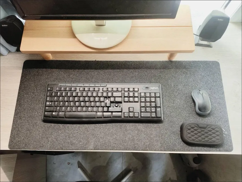 A minimalist desk mat designed to protect your workspace while improving comfort and precision during daily computer use. The smooth surface supports accurate mouse movement, while the anti-slip base keeps the mat stable, creating a clean and professional desk setup.